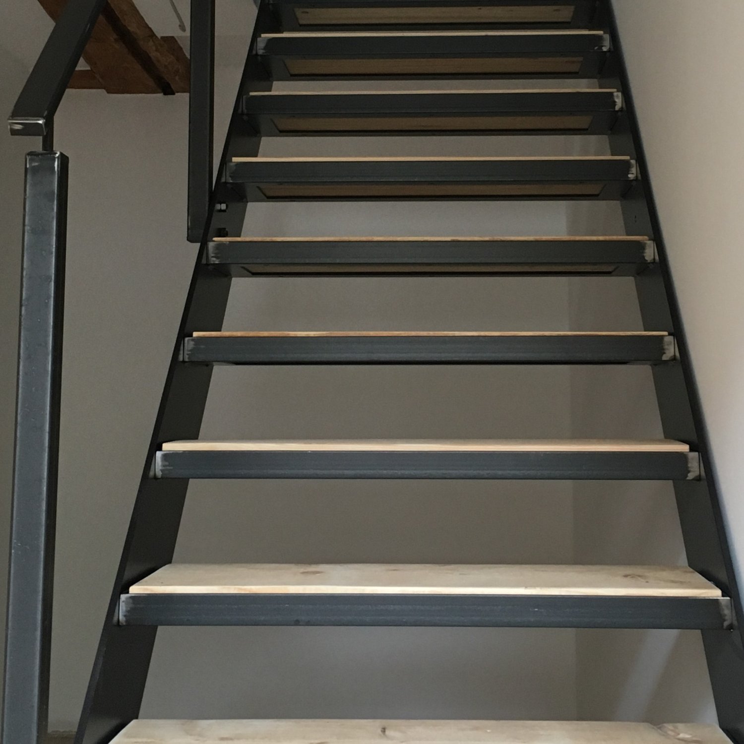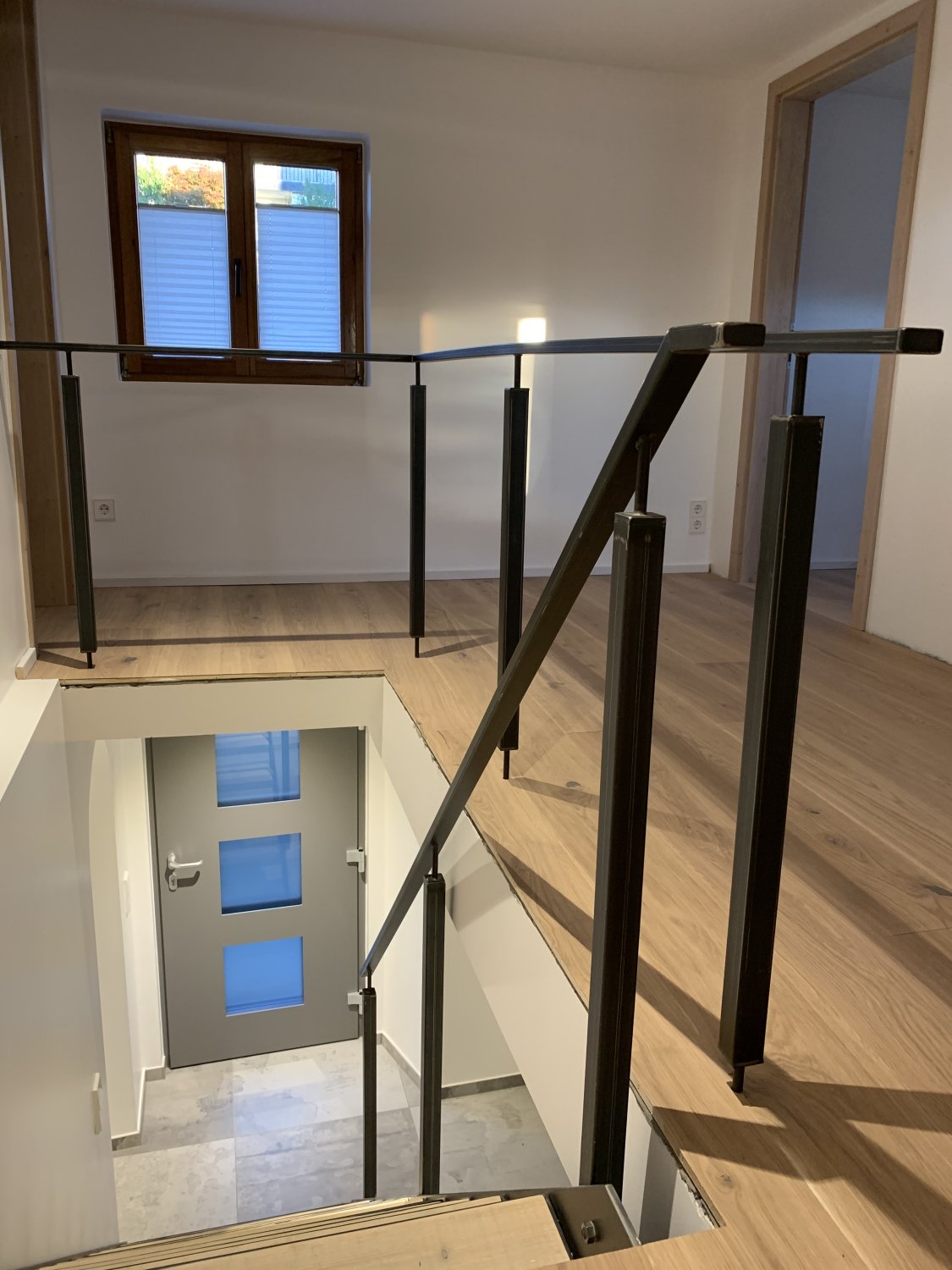 Danach folgte das Treppenhaus, hier wurde die alte Holztreppe durch eine leichte moderne Stahltreppe mit Holztritten ersetzt.